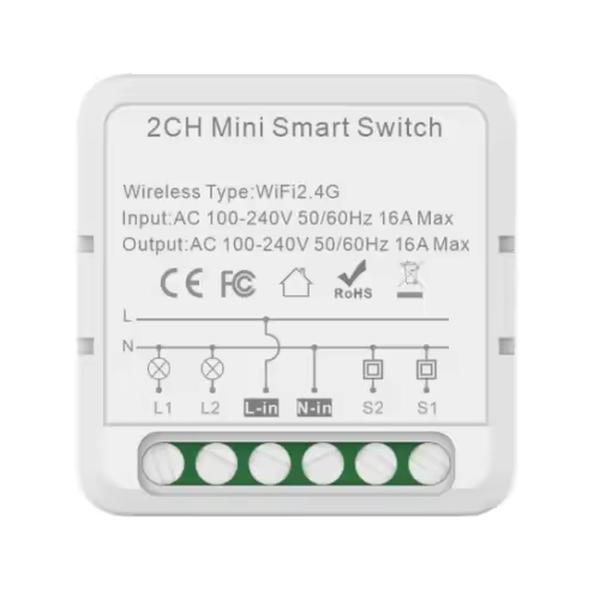 Pici mérete miatt akár egy kapcsoló vagy konnektor fészkébe is elhelyezhető okoskapcsoló. Tuya kompatibilis, ezáltal minden jelentősebb okosotthon rendszerrel kompatibilis, de önmagában is használható. Egyszer felprogramozva a Tuya appon keresztül, több funkciót magától is tud. Az S1, S2 pontokra külső kapcsolót lehet kötni, ezáltal kézzel is kapcsolható.