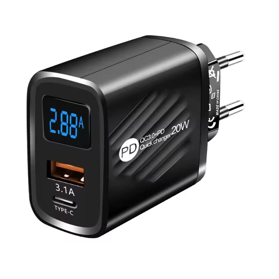 AR-893 típusú sima 5V-os telefontöltő, 1 db. USB Type-C és 1 db. USB-A csatlakozóval, ezáltal 2 eszközt tud egyszerre tölteni max. 15W teljesítménnyel. Kijelzőjén folyamatosan tájékoztat a töltési feszültségről és töltőáramról. Az egyéb feliratok (20W, QC3, stb) csak kínai dekorációs motívumok, nincs mögöttük valós műszaki tartalom. A megjelenése, anyaghasználata, összeszerelése hibátlan. A termékhez kábelek nincsenek mellékelve.