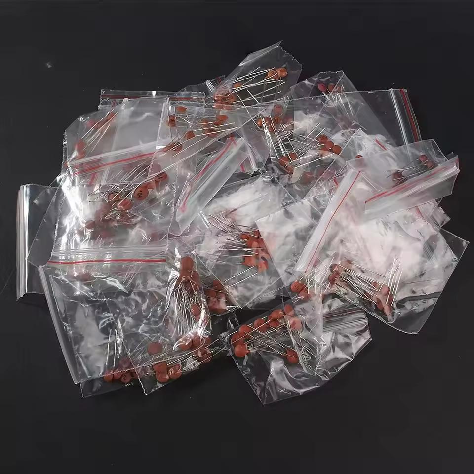 Kerámia kondenzátorok, 24 érték, mindegyikből 40 db. Tároló doboz nélkül egyszerű zacskókban, feliratozva küldjük.