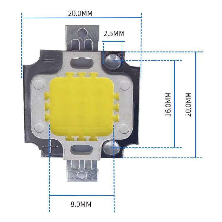 Hideg (6000K) vagy meleg (2700K) fehér fényű LED modul, alumínium hordozón 11×11 mm-es COB chip. Teljes fényerőhöz kb.11 V 900 mA szükséges áramgenerátorral táplálva. Működtetéséhez hűtőfelületre kell ragasztani.