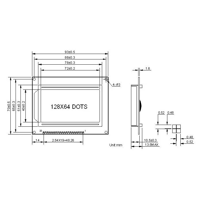 Nagy méretű monokróm grafikus kijelző kék háttérvilágítással, párhuzamos vezérléssel.