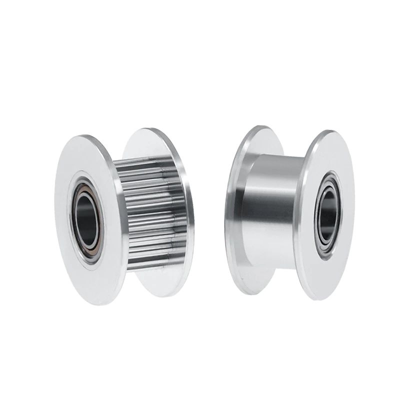 3 mm-es tengelyre illeszkedő sima idler, átmérőben a 20 fogúval egyezik meg. 2 mm-es fogtávolsággal, 6 mm-es bordásszíjhoz használható. A sima gurulás érdekében 2 kis csapágy van beépítve.