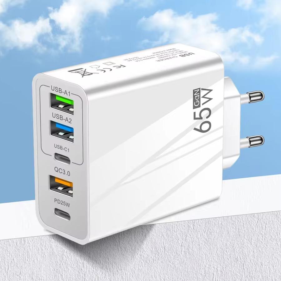 Sima 5V-os telefontöltők, többféle kombinációban tartalmaznak USB Type-C és USB-A csatlakozókat, ezáltal több eszközt tudnak egyszerre tölteni max 10W teljesítménnyel. Az egyéb feliratok (65W, GaN, PD, stb) csak kínai dekorációs motívumok, nincs mögöttük valós műszaki tartalom. A megjelenésük, anyaghasználatuk, összeszerelésük jó. A termékekhez kábelek nincsenek mellékelve.