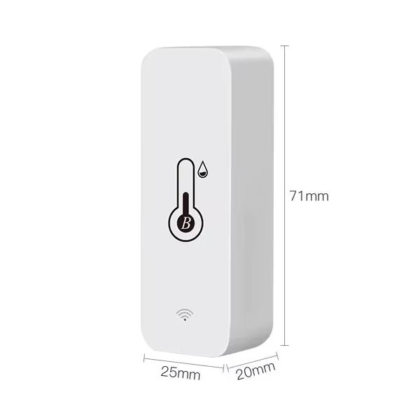 Kis méretű okos hőmérő kijelző nélkül, hőmérséklet és páratartalom mérésre és adatgyűjtésre. Az adatokat 1 órás bontásban gyűjti. Bluetooth 5.0 LE kapcsolaton keresztül okostelefonhoz csatlakoztatható, vagy egy Tuya bluetooth gateway segítségével folyamatosan adatot gyűjt a felhőben, amivel bármilyen Tuya kompatibilis okosotthon rendszer használható. WiFi kapcsolata nincs, ezért ő maga nem csatlakozik az internetre, de a mért adatokat 1 hétig megőrzi, és ha egy telefon vagy tablet bloetooth-on kapcsolódik rá, az összegyűjtött adatokat feltölti a felhőbe.
