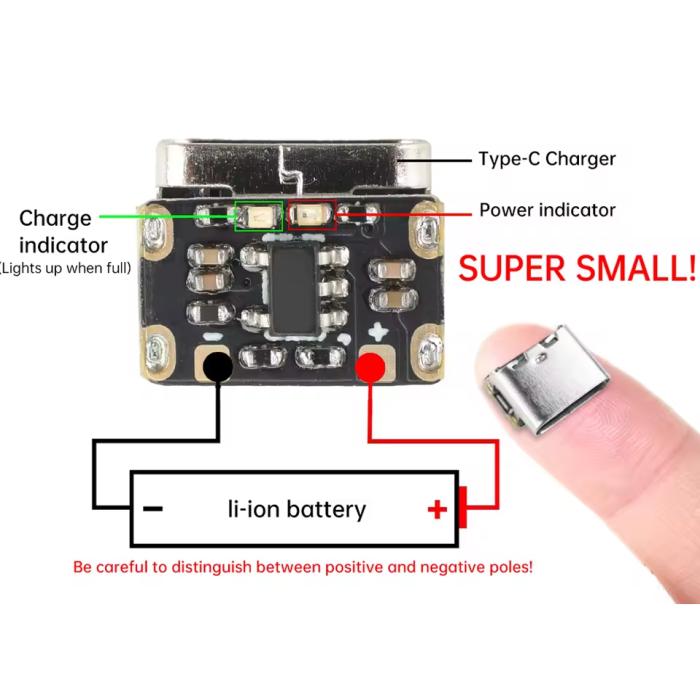 Ez a modul USB Type-C csatlakozón keresztül egy egy-cellás Li-ion vagy Li-polymer akkumulátort szabályosan fel tud tölteni. Akkumulátorvédő (BMS) áramkört nem tartalmaz.