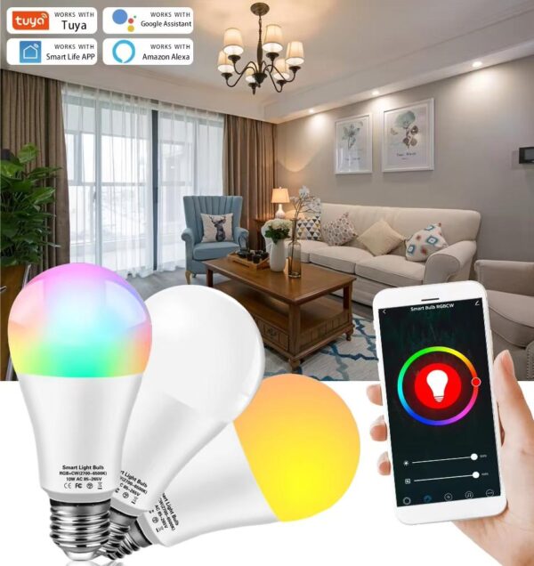 Ez egy normál E27 foglalatba csavarható LED égő, a Tuya rendszerén keresztül távolról is vezérelhető, kapcsolható, változtatható a színe, színhőmérséklete, fényereje.