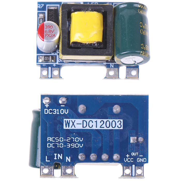 Igazán picike galvanikusan leválasztott tápegység 50 – 270 V AC vagy 70 – 390V DC bemenő feszültséggel. Alkalmas mindennemű kis teljesítményígényű készülék (mikrokontrollerek, kis áramkörök, akkumulátortöltők, lámpák, mini szivattyúk, stb.) táplálására, amik 5 V feszültséggel működnek. Nagyon megbízható, nem melegedő típus.
