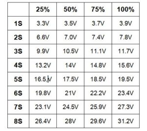 A különböző cellaszámokhoz az alábbi feszültségértékek tartoznak: